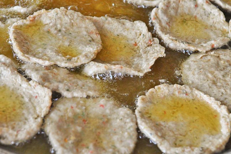“Kerja ini perlu berdiri lama, menepuk adunan cepat-cepat dan terus goreng dalam minyak panas. Tak boleh lambat kerana adunan mudah rosak,” katanya.