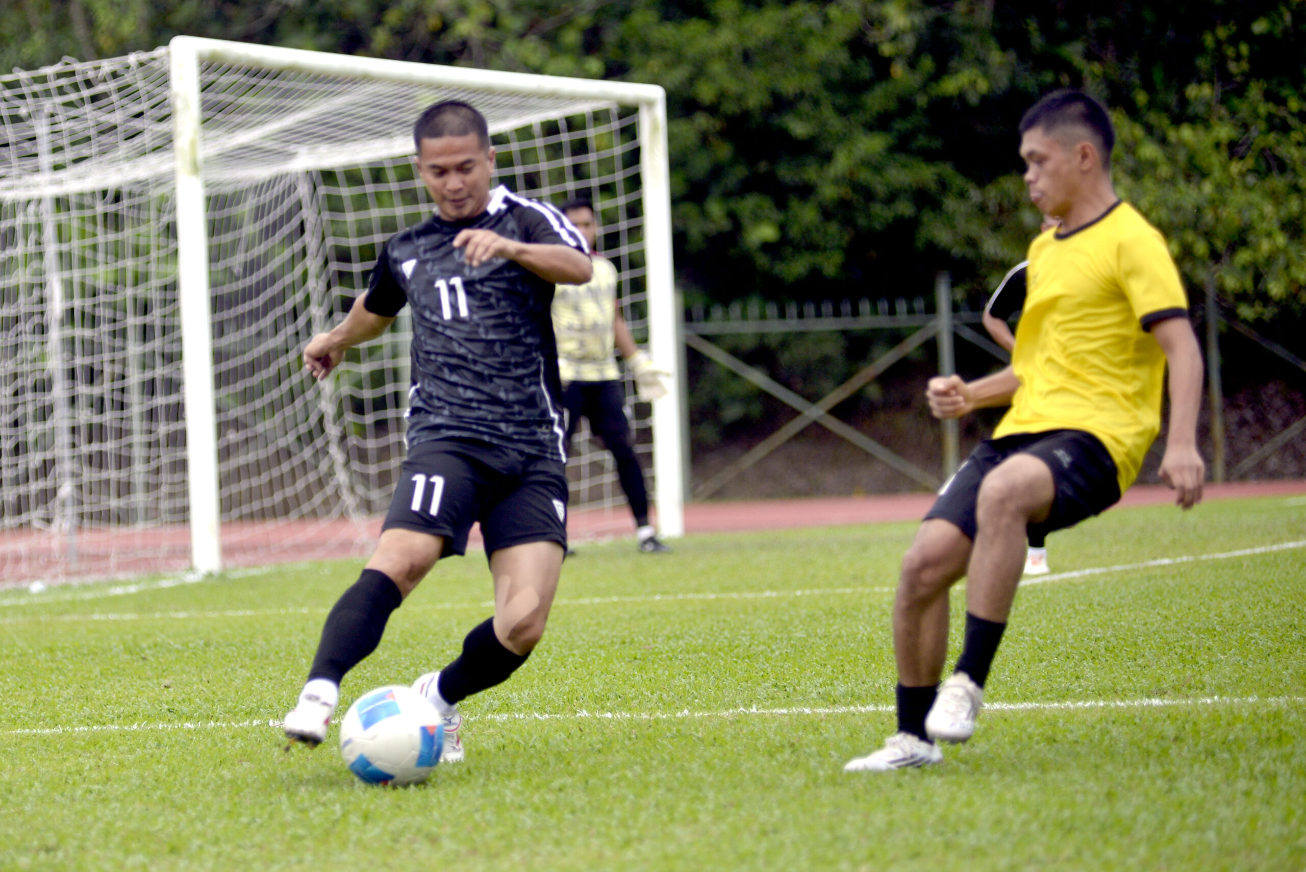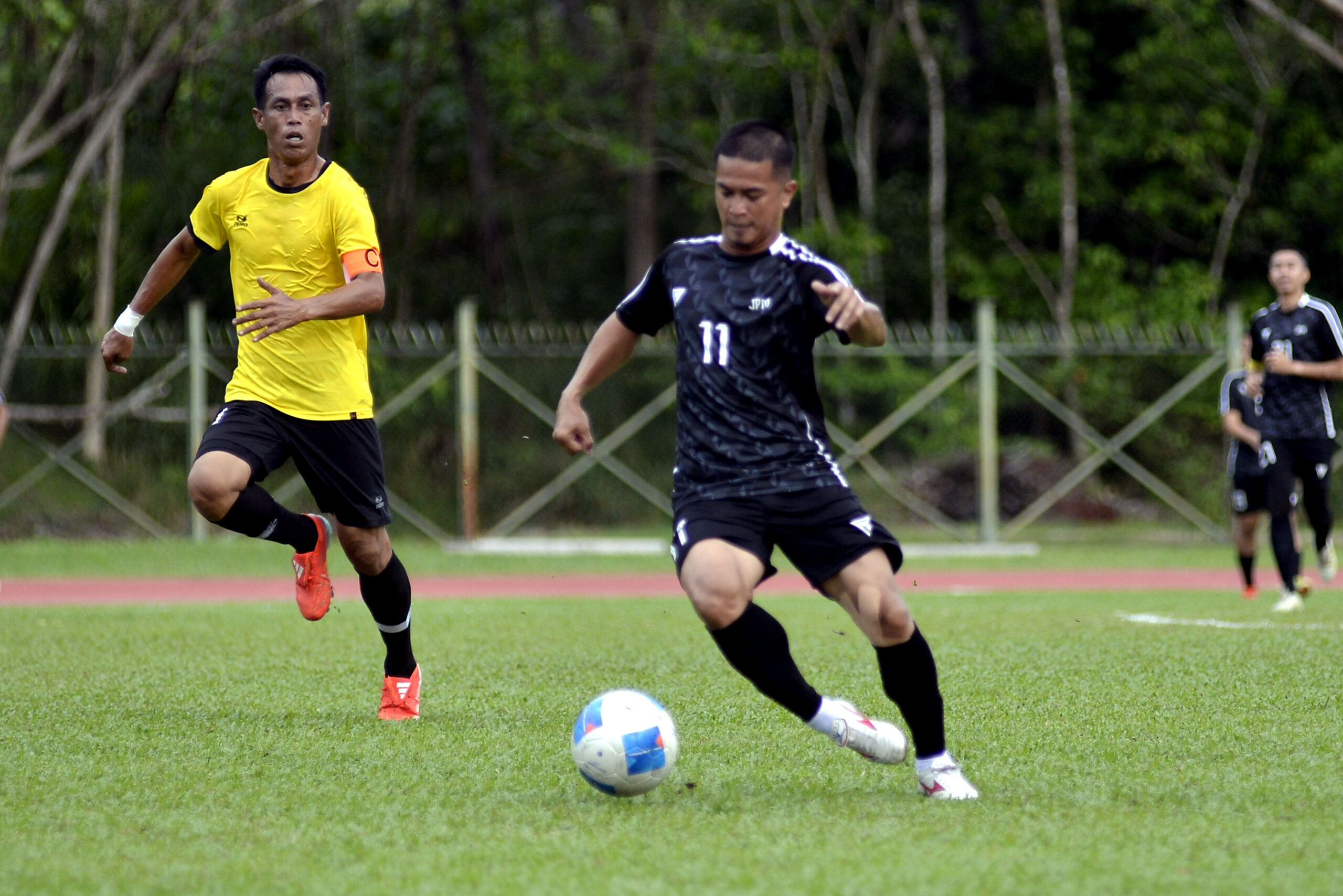 BANDAR SERI BEGAWAN, 27 OGOS –Pasukan Bola Sepak Kementerian Hal Ehwal Dalam Negeri (KHEDN) mengungguli puncak kedudukan Kumpulan B selepas mengalahkan pasukan Bola Sepak Jabatan Perdana Menteri (PMO) dengan jaringan 3-1 di kejohanan Piala Keputeraan 2025 di Padang dan Belapan, Berakas, kelmarin.