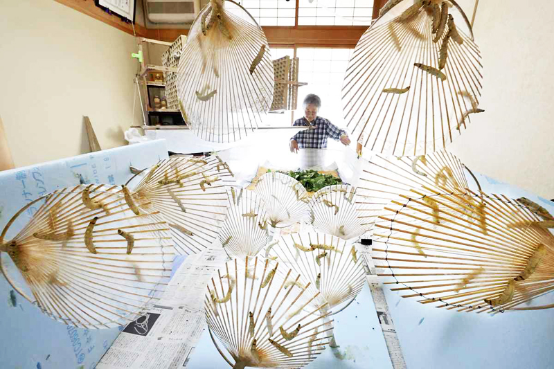 NARUTO, TOKUSHIMA – Sanyuan merupakan sebuah bengkel di mana kipas dihasilkan dengan menternak ulat sutera pada batang buluh di Naruto, Wilayah Tokushima.