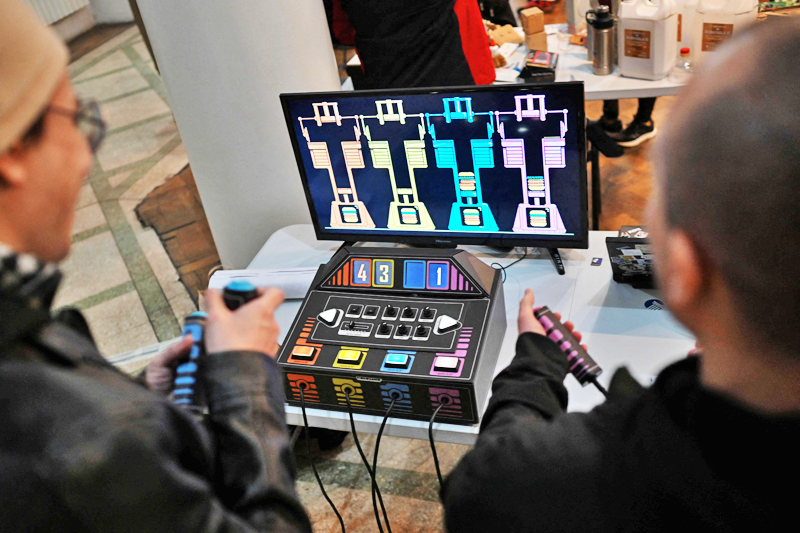 Para pengunjung juga beratur untuk bermain Ventilastation, sebuah konsol permainan yang dibuat daripada kipas industri, dan mempelajari cara menjalankan aplikasi AI secara tempatan pada komputer lama.