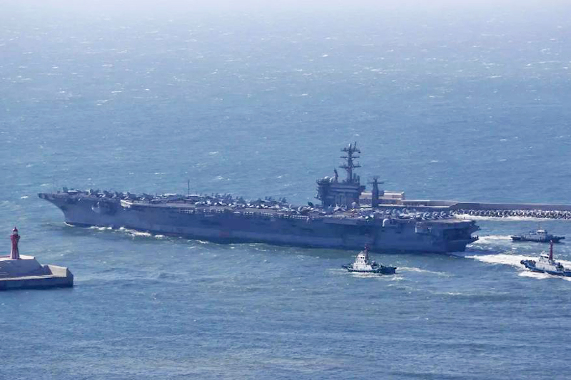 Kapal induk berkuasa nuklear AS dan kapal lain dari kumpulan serangan tentera lautnya akan mengadakan kunjungan selama lima hari ke bandar pelabuhan selatan Busan akhir minggu ini, kata Kementerian Pertahanan.