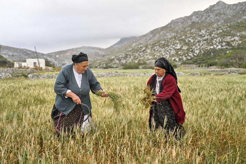 “Kami tidak mempunyai pilihan selain bekerja tanpa kehadiran lelaki. Ini adalah satu-satunya cara kami untuk bertahan,” kata Anna Lentakis yang berusia 67 tahun ketika dia memetik buah articok di kampung Avlona berhampiran Olympos.