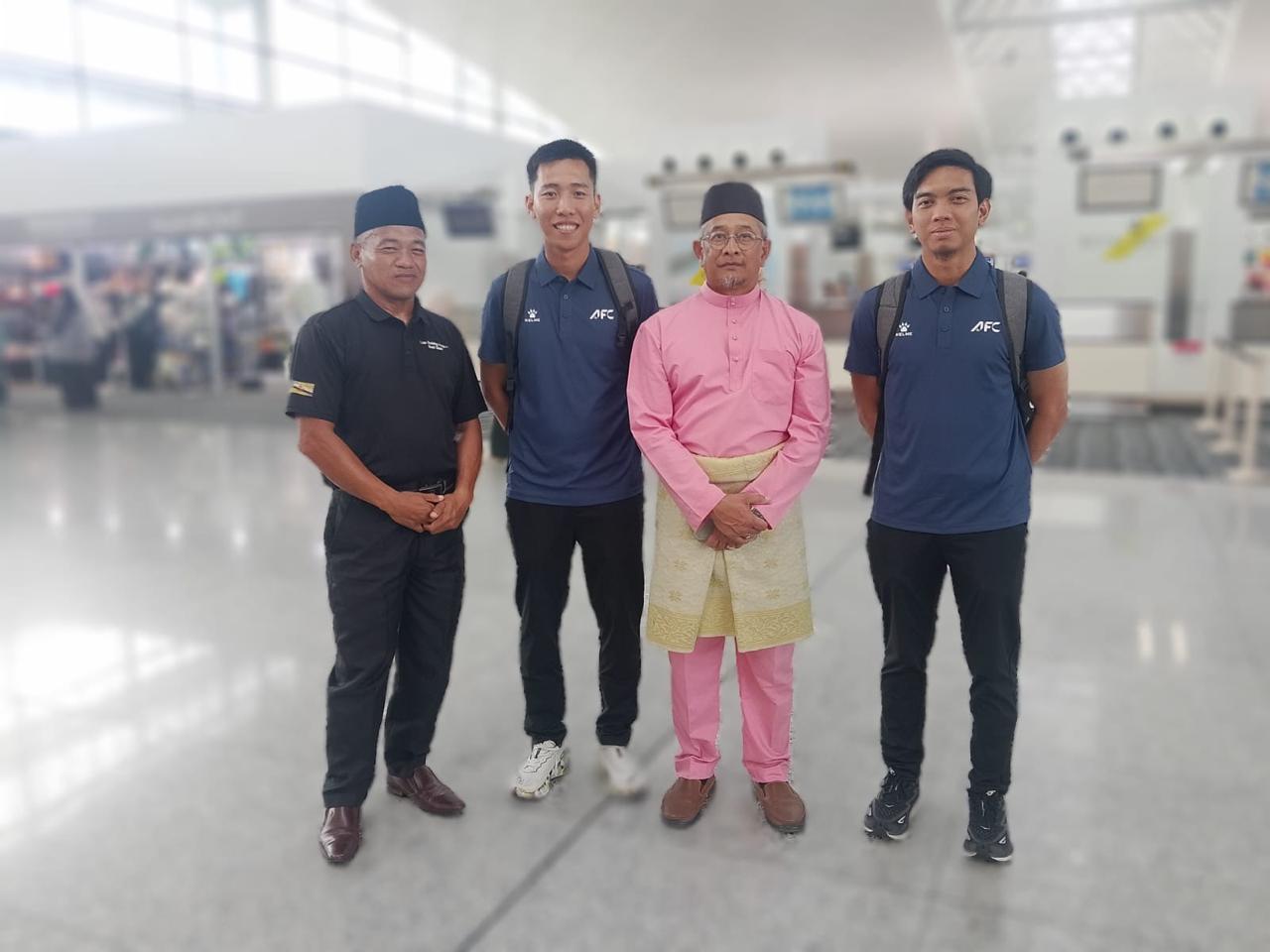 Hadir di Lapangan Terbang Antarabangsa Brunei bagi mengucapkan selamat berlepas kepada kedua-dua pengadil itu, Ketua Jabatan Pengadil FABD, Mohd Yusof Zaki bin Haji Seruddin.
