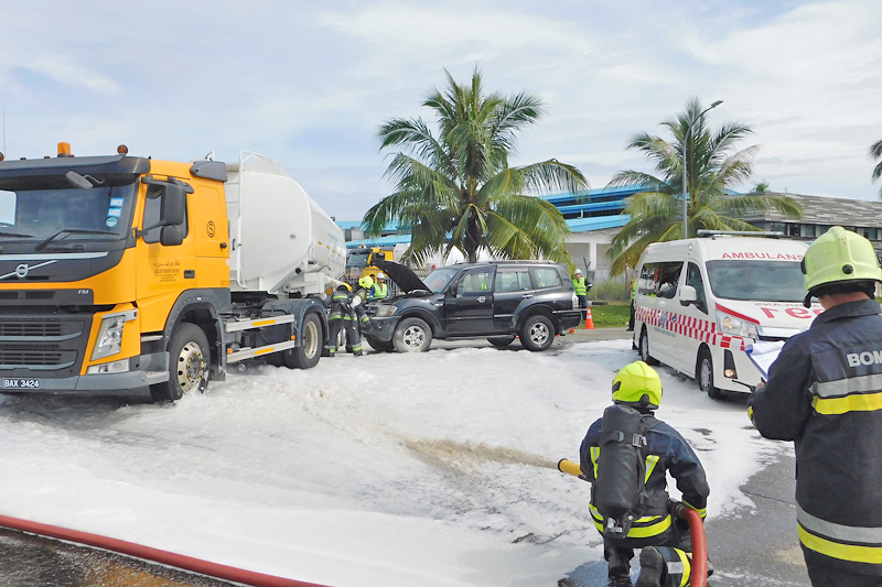 TUTONG, 25 SEPT – Dengan matlamat untuk menguji dan menilai keupayaan serta respons segera pemandu, kakitangan yang bertugas dan pasukan tindak balas kecemasan (ERT) dalam menguruskan insiden, Syarikat Aziz Latif Transport Sdn Bhd (ALTSB) telah melaksanakan Latihan Kecemasan: Latihan Bersepadu 2024 bertempat di Kawasan Perindustrian Serambangun, Daerah Tutong, pagi tadi.