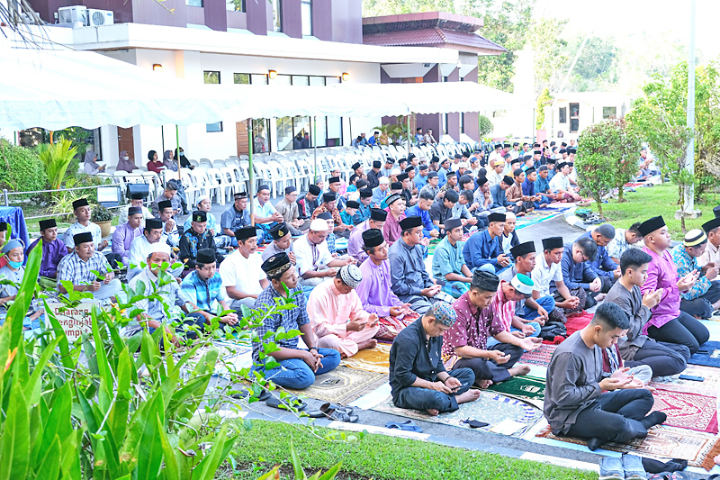 Sembahyang Sunat Aidilfitri dipimpin oleh Haji Minfadhlillah Hamid sementara pensyarah Universiti Islam Sultan Sharif Ali (UNISSA), Profesor Madya Dr Haji Abdurrahman Raden Aji Haqqi selaku khatib.
