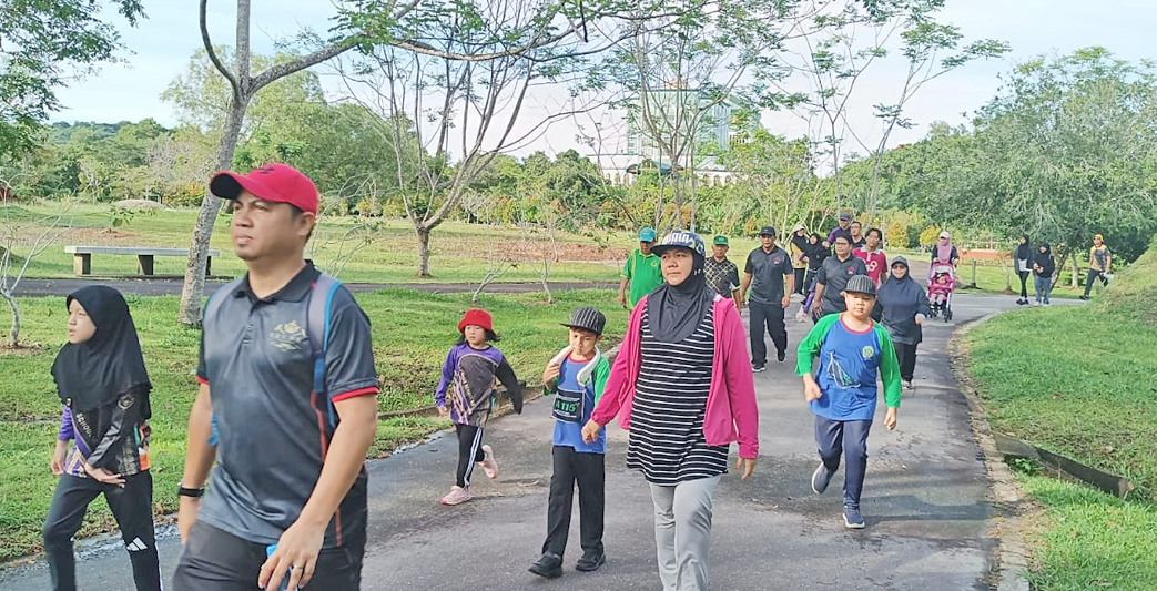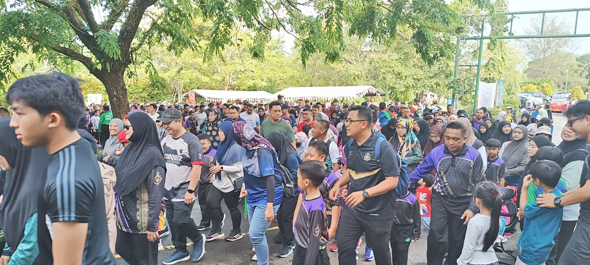 Peserta walkaton berjalan sejauh 1.5 kilometer dan acara dimeriahkan dengan aktiviti cabutan bertuah.