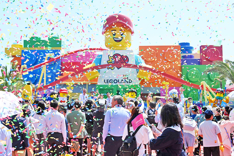 Peminat Lego yang teruja berpusu-pusu memasuki taman sebaik sahaja ia dibuka, dengan memakai baju bertemakan Lego dan mengibarkan bendera berjenama sambil menikmati kawasan seluas 318,000 meter persegi dalam cuaca panas terik.