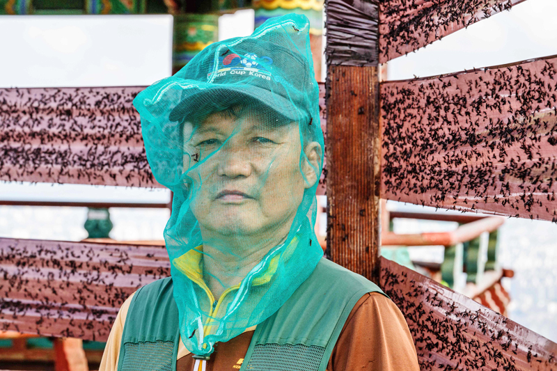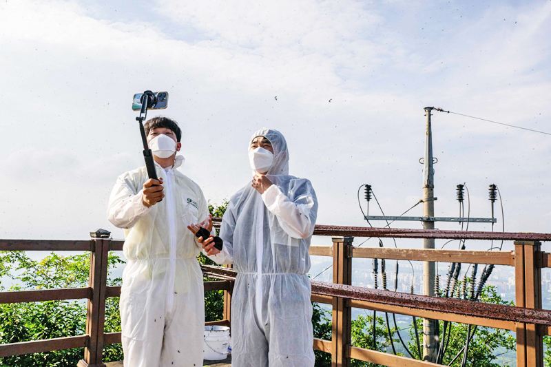 Di Gunung Gyeyangsan, pencipta kandungan Kim Ji-young dan Sam Jung dengan sengaja berpakaian dalam warna putih warna yang dikenali untuk menarik serangga dan merakamkan diri mereka sedang dikerumuni serangga berkenaan.