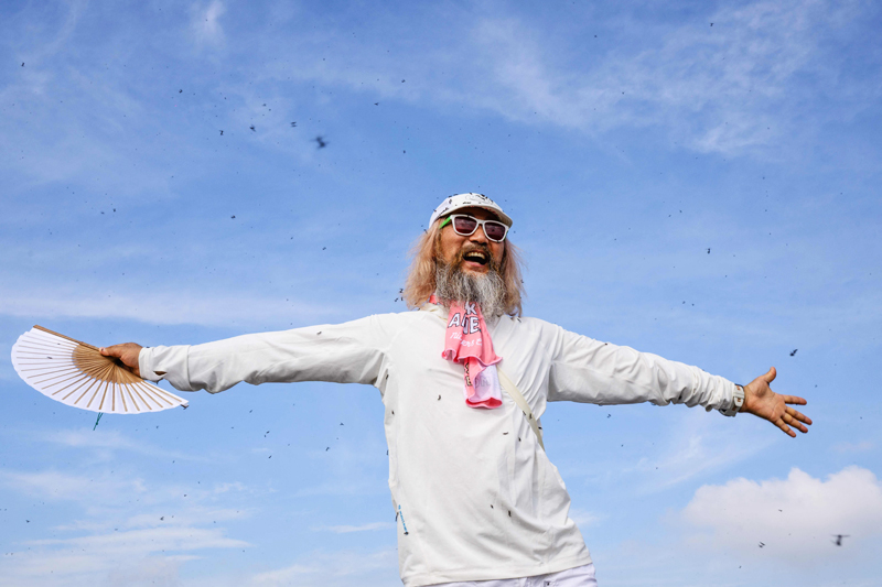 “Ini mungkin sesuatu yang tidak akan saya alami lagi seumur hidup saya,” kata Jung, ketika topi dan pakaiannya dikerumuni dengan lalat lovebug.