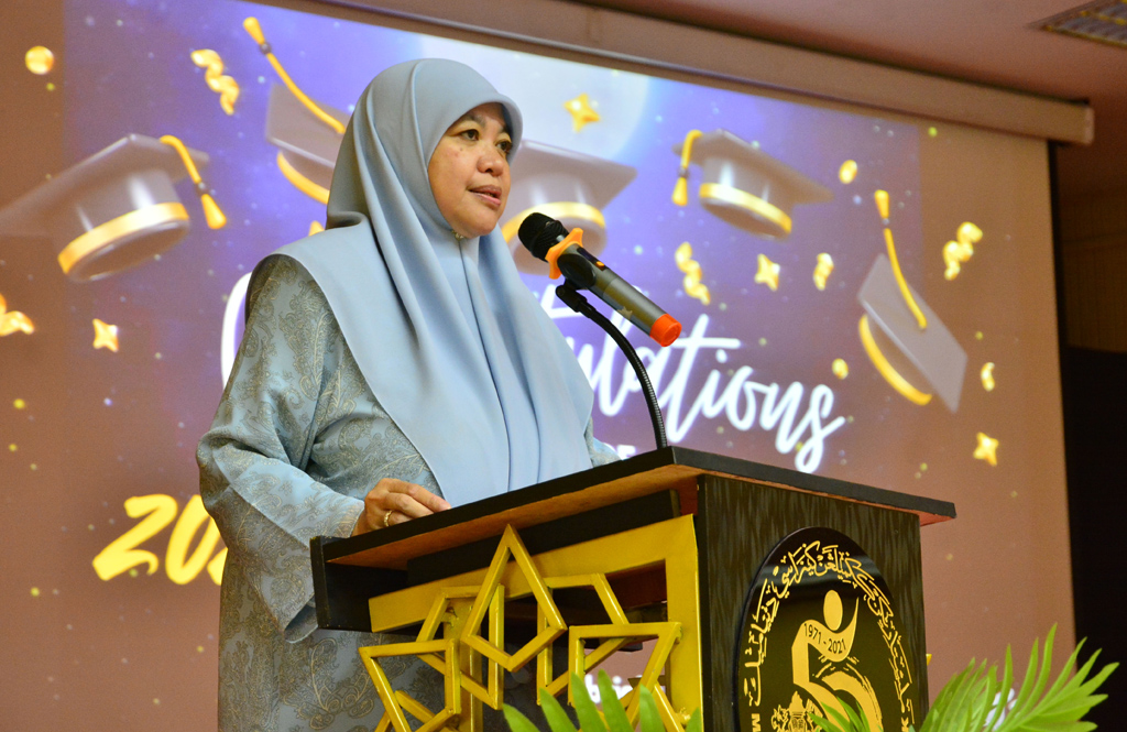 Beliau mengucapkan tahniah kepada semua graduan atas kejayaan mereka berjaya menamatkan pengajian yang mana ia bukannya suatu pencapaian yang mudah tetapi menuntut kesungguhan, pengorbanan serta semangat yang kental daripada mereka.
