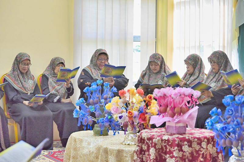 Majlis dimulakan dengan bacaan Surah Al-Fatihah yang dipimpin oleh pengajar kelas berkenaan, Awang Muhammad Mustaqim bin Haji Muhd Mustafa, diikuti dengan bacaan Doa Khatam beramai-ramai oleh para peserta.