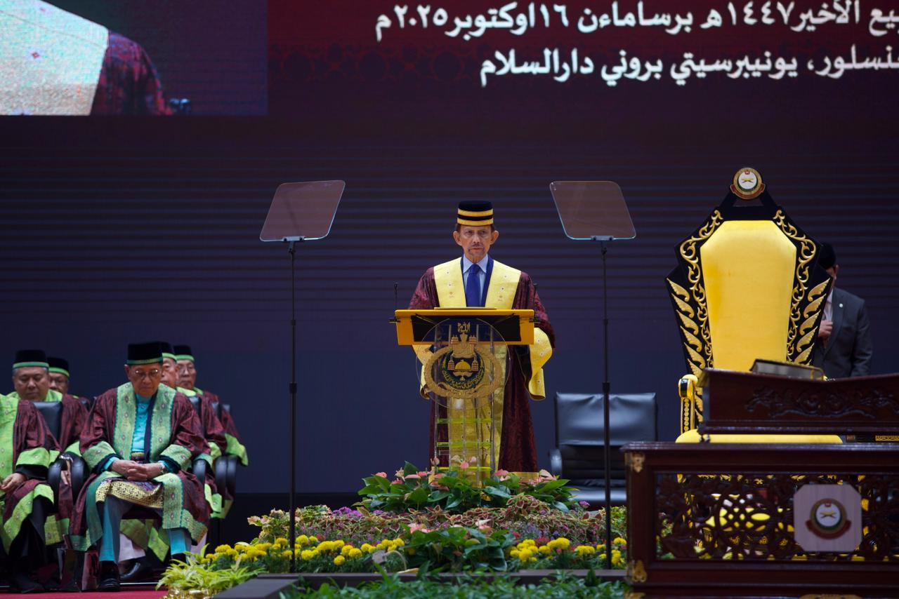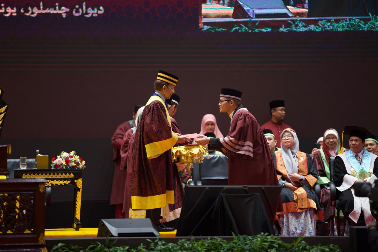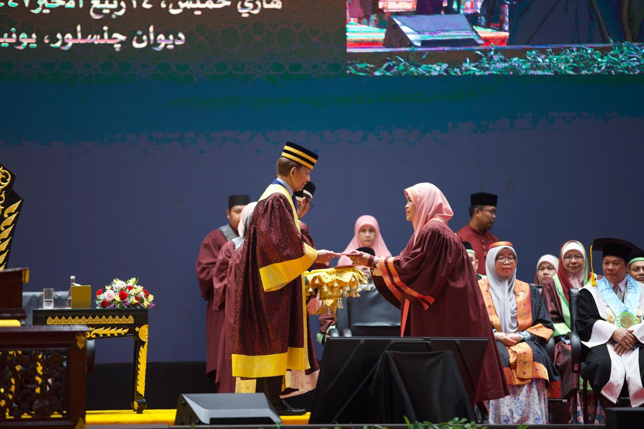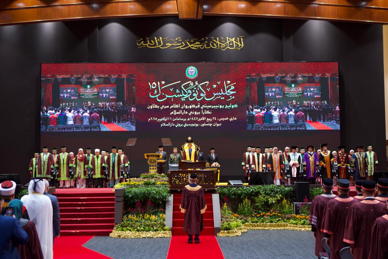 Kebawah Duli Yang Maha Mulia Paduka Seri Baginda Sultan Haji Hassanal Bolkiah Mu’izzaddin Waddaulah Sultan dan Yang Di-Pertuan Negara Brunei Darussalam dan juga selaku Canselor KUPU SB telah berkenan berangkat menyempurnakan pengurniaan ijazah dan diploma kepada para graduan bagi pelbagai program pengajian di majlis yang penuh gilang-gemilang tersebut.