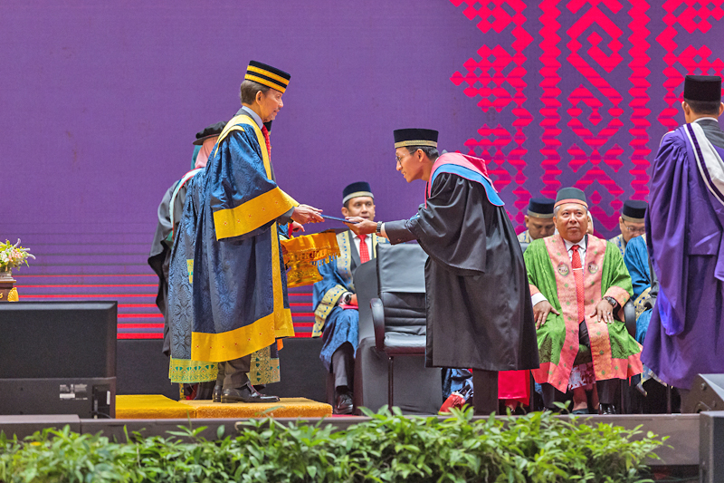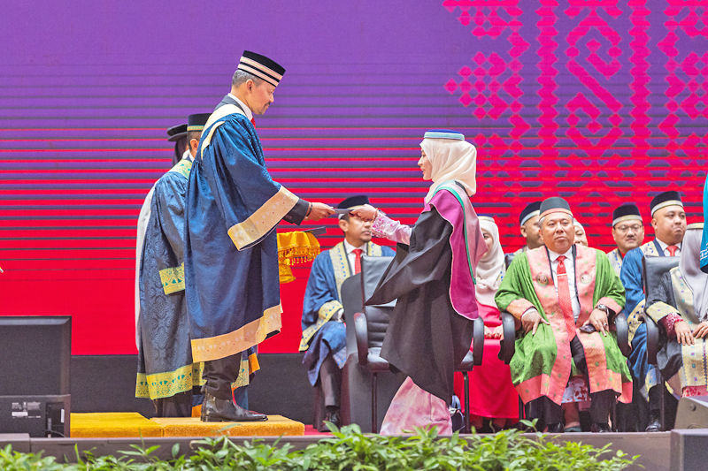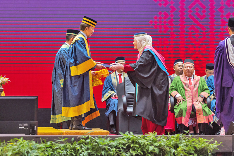 Kebawah Duli Yang Maha Mulia Paduka Seri Baginda Sultan Haji Hassanal Bolkiah Mu’izzaddin Waddaulah, Sultan dan Yang Di-Pertuan Negara Brunei Darussalam, Canselor UBD telah berkenan berangkat menyempurnakan pengurniaan ijazah PhD dan sarjana muda iaitu Sarjana Muda Sastera, Sarjana Muda Sains, Sarjana Muda Kejuruteraan dan Sarjana Muda Sains Digital kepada para graduan pada sebelah pagi.