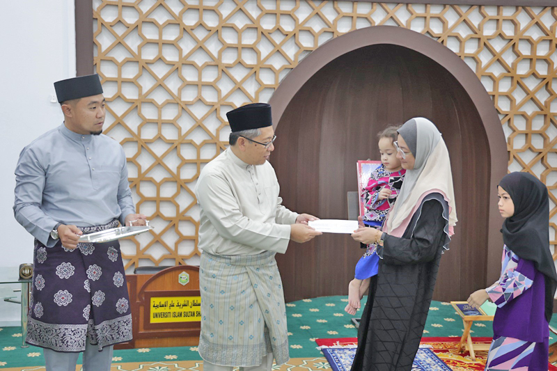 Majlis seterusnya dilanjutkan dengan penyampaian sumbangan kepada seramai 31 orang anak yatim warga UNISSA yang disempurnakan oleh tetamu kehormat majlis.