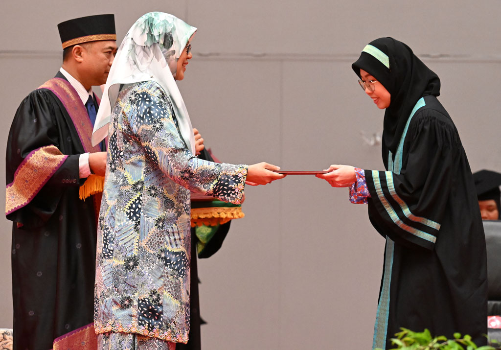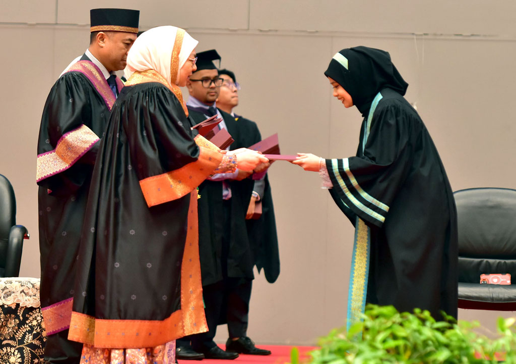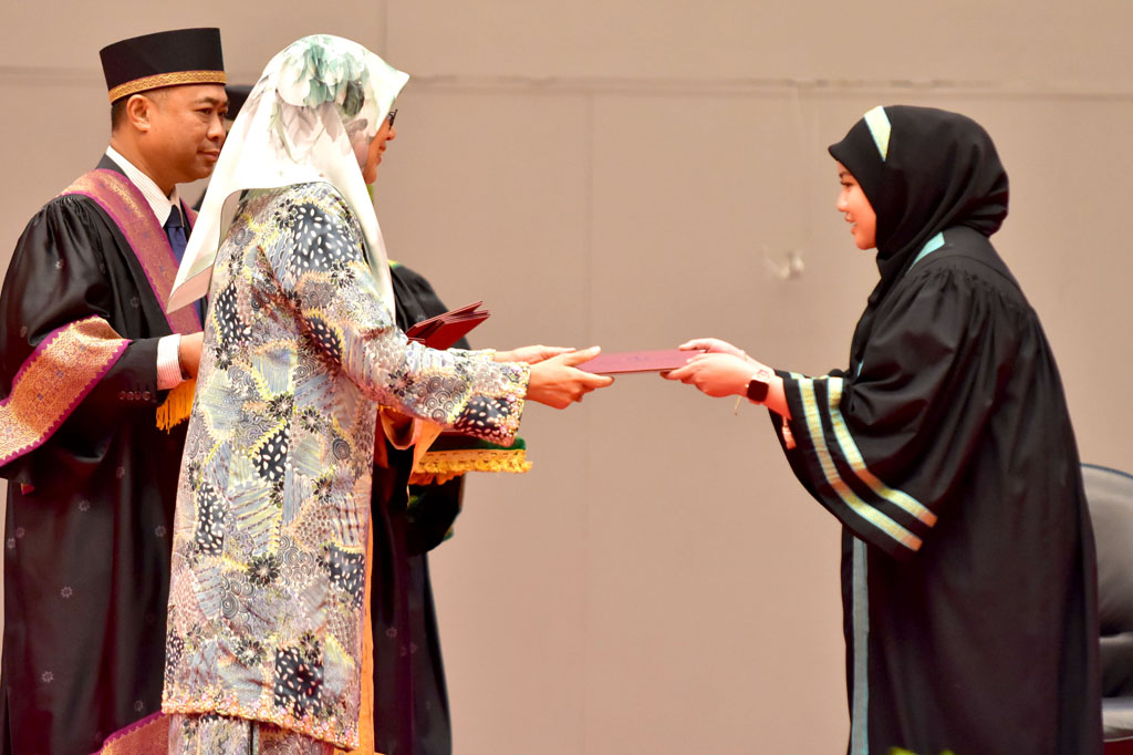 Sementara itu, pada sesi petang, hadir selaku tetamu kehormat dan menyempurnakan penyampaian sijil kepada para graduan yang diraikan,Timbalan Menteri Kewangan dan Ekonomi (Fiskal), Pengiran Datin Hajah Zety Sufina binti Pengiran Dato Paduka Haji Sani.