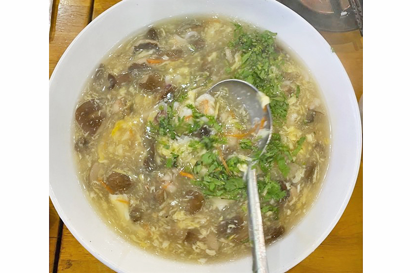Dalam menunya, sup daripada cendawan dengan telur, makanan laut, dan bubur cendawan, adalah antara menu utamanya.