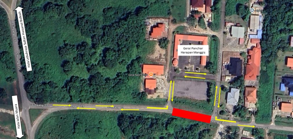 BANDAR SERI BEGAWAN, 25 JUN – Jabatan Kerja Raya (JKR), Kementerian Pembangunan memaklumkan kepada orang ramai terutamanya para pengguna jalan raya mengenai penutupan sementara sepenuh jalan berhadapan Gerai Panchar Harapan Manggis, di Simpang 23, Jalan Manggis Satu, pada 25 Jun sehingga kerja-kerja selesai bermula pukul 7 pagi hingga kerja-kerja selesai.