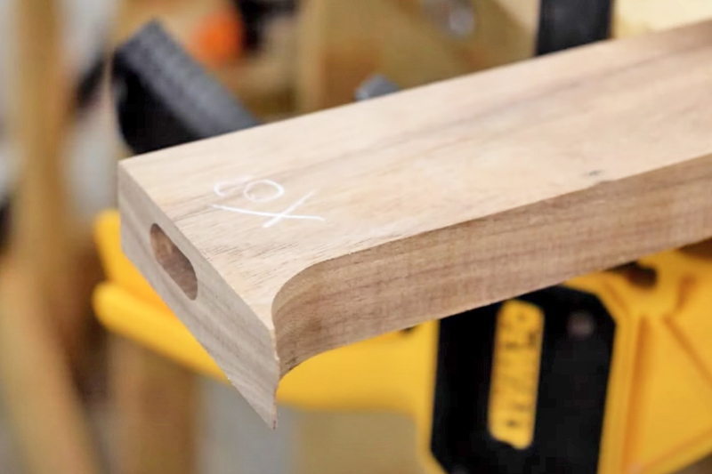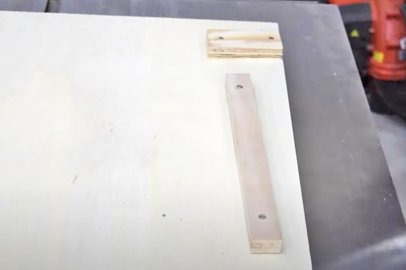 Kayu bahagian atas dan bawah akan mempunyai lebar yang sedikit unik untuk memberikan kelainan pada rekaan. Salah satu bahagian hujung mempunyai lebar 3 inci manakala bahagian hujung satu lagi 2 inci. Untuk merekanya jig diperbuat daripada papan lapis dan kepingan papan yang ditetapkan bagi menentukan bentuk yang dipotong. (Gambar 3)