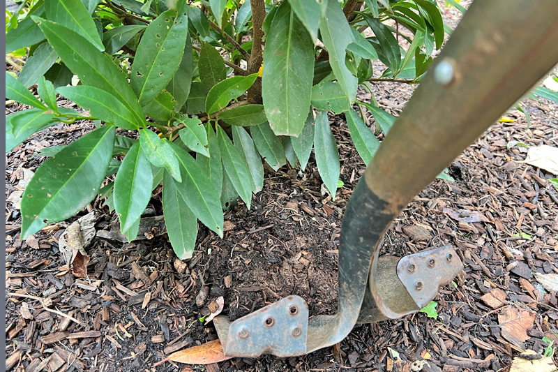 Sebelum menggali pokok renek, ketahui dahulu sejauh mana kedalaman dan keluasan akarnya. Pokok renek berakar cetek seperti rhododendron lebih mudah digali berbanding manzanita, yang mempunyai sistem akar dalam.