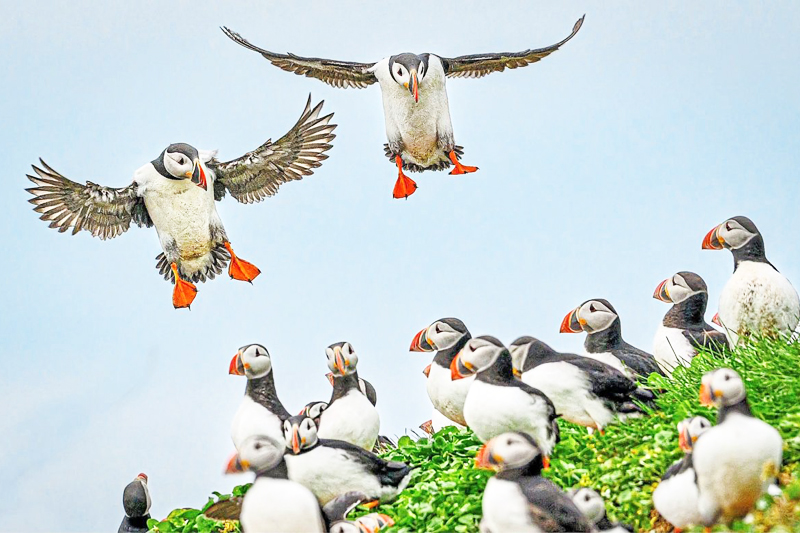 Dan kemudian, pufin naik dari laut, sayapnya berkepak pantas, paruh bersinar dan mata yang cerah. Manakala di laut, ikan memancarkan cahaya berkilauan. Andrew menekan butang kamera.