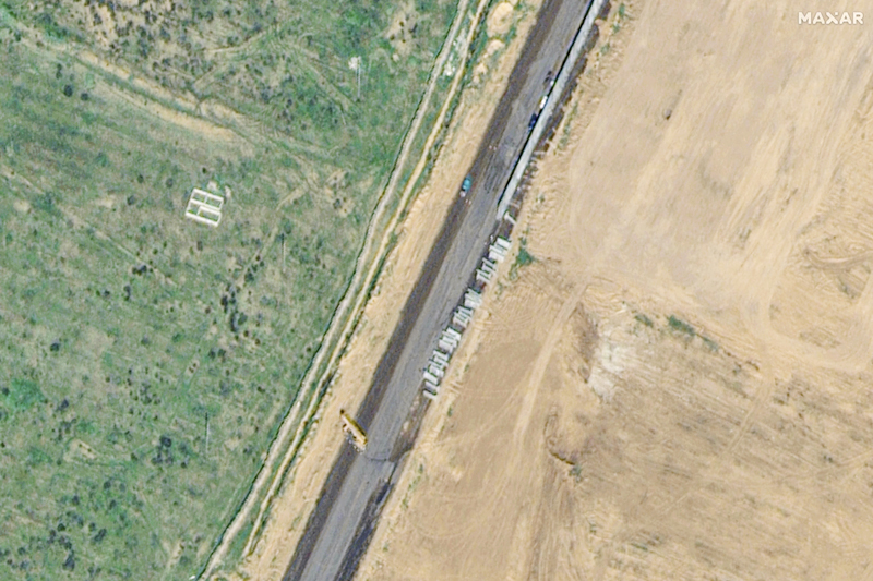Imej satelit, yang diambil kelmarin oleh Maxar Technologies, menunjukkan pembinaan dinding sedang berjalan, yang terletak di sepanjang Jalan Sheikh Zuweid-Rafah kira-kira 3.5 kilometer di barat sempadan dengan Gaza. Imej tersebut menunjukkan kren, trak dan apa yang kelihatan seperti penghadang konkrit yang dipasang di sepanjang jalan. – AP