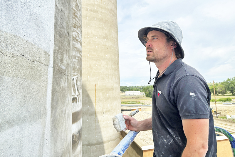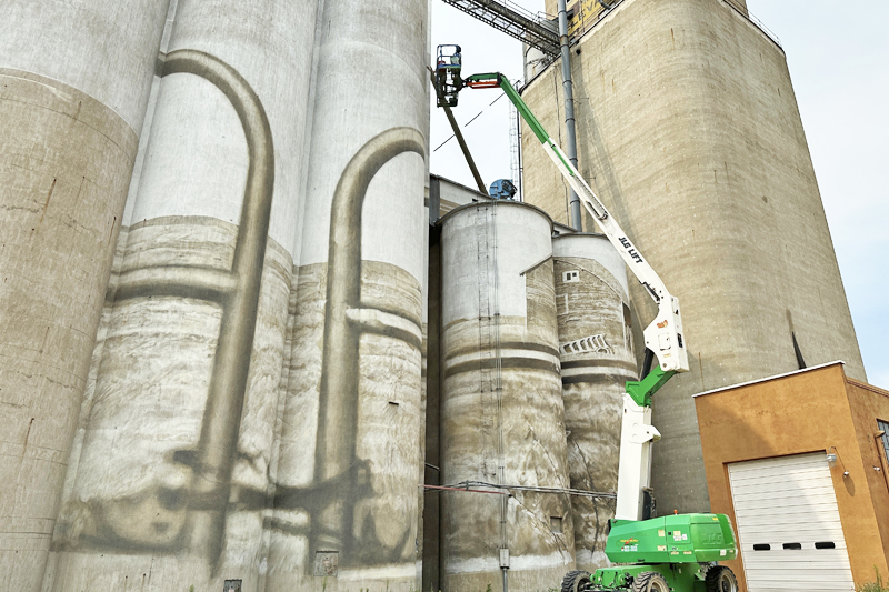 MINOT, NORTH DAKOTA – Tinggi di atas lif bijirin besar di tengah Minot, North Dakota, artis Guido van Helten melorek dinding konkrit dengan berus yang kelihatan lebih sesuai untuk mengecat pagar daripada mencipta mural gergasi.