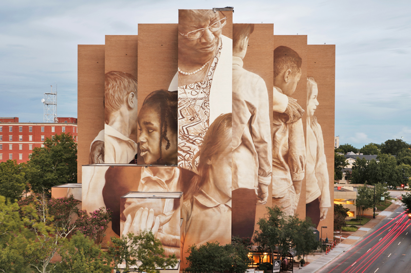 Ia bukan proses yang cepat, memandangkan van Helten pada mulanya bertemu dengan penduduk untuk mengetahui tentang komuniti dan kemudian menghabiskan berbulan-bulan mengubah secara perlahan-lahan struktur yang biasanya terbesar di sebuah bandar kecil. Dia mula melukis di Minot pada bulan Mei dengan rancangan untuk menyiapkan mural 360 darjah yang menggabungkan fotografi dengan lukisan untuk menggambarkan penduduk dan budaya sesuatu kawasan.