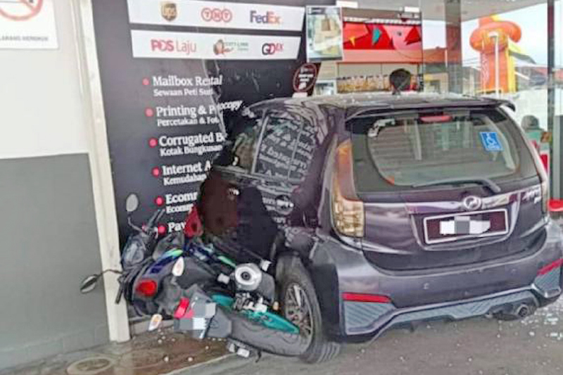 “Akibat daripada itu, pemandu berkenaan dia tidak dapat mengawal kenderaannya hingga terbabas ke hadapan lalu melanggar motosikal jenis Yamaha yang diparkir dan merempuh dinding kaca premis berkenaan,” katanya dalam kenyataan, hari ini.