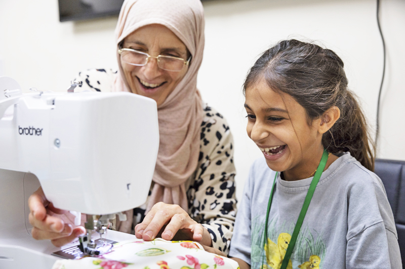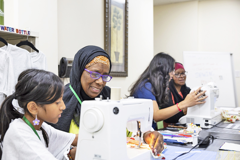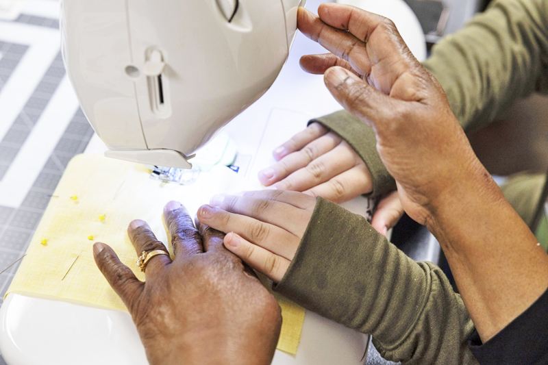 Pada bulan Julai, semasa minggu terakhir perkhemahan, Janna Moten dan rakan-rakannya belajar cara-cara menggunakan mesin jahit dan membuat kantung.