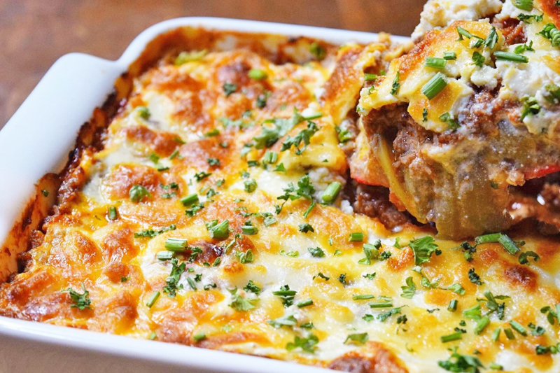 Lasagna terung buatan sendiri, dengan kehangatan dan rasa yang seimbang, berbeza daripada versi lasagna yang lebih berat dan dilengkapi dengan limpahan keju yang banyak.