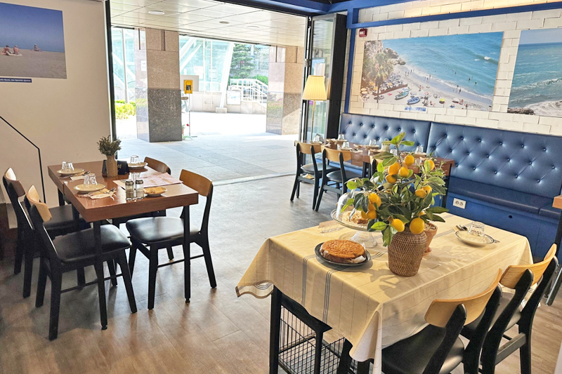 Restoran tersebut dilengkapi dengan papan tanda warna biru termasuk bahagian dalamannya. Kedai makan itu mencerminkan kegemaran penduduk bandar terhadap cita rasa Mediterranean sejak ia dibuka pada 2021.
