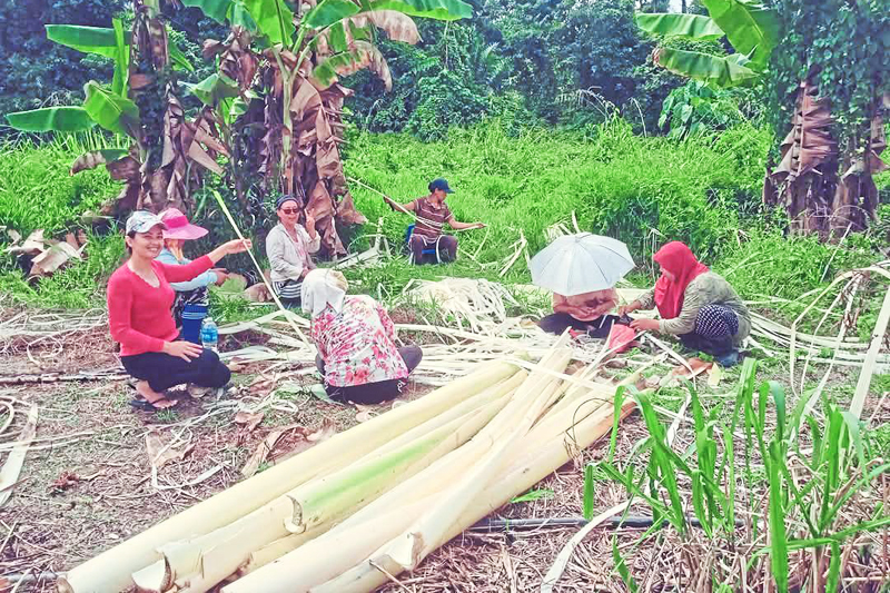 “Contohnya, varieti seperti pisang tanduk dan pisang nangka mempunyai batang yang lebih tinggi yang menghasilkan lebih banyak serat, manakala pokok yang lebih pendek seperti pisang emas dan pisang berangan menghasilkan kurang,” kata petani Dusun Kimaragang it, ketika mengubah batang pisang menjadi produk mesra alam.