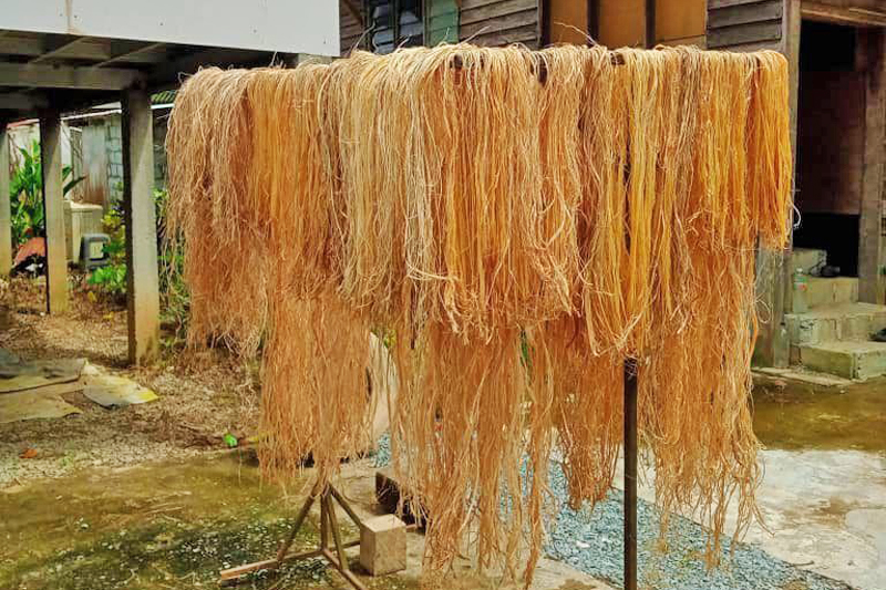 Ia kemudian dibasuh bersih dan dikeringkan selama beberapa hari. Setelah siap, gentian yang lentur ditenun dengan tangan menjadi tali untuk kraf.