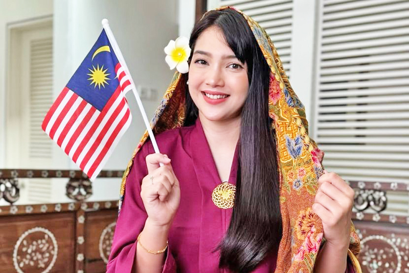 Pelakon itu turut memuat naik gambar memakai baju kurung sambil memegang Jalur Gemilang.