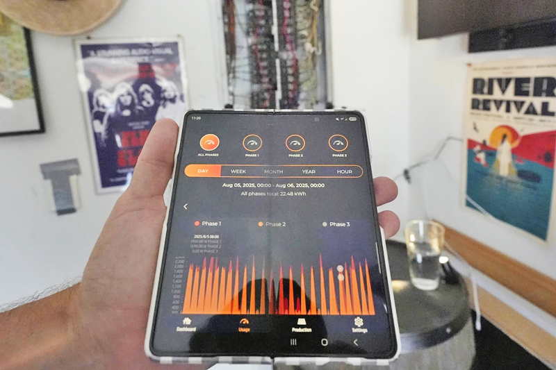 Sistem solar beranda yang dipasang di ruang halaman belakang rumah Dwyer pada Mac itu mempunyai dua panel 400 watt, penyongsang, meter pintar dan pemutus litar. Ia menjimatkan kira-kira AS$35 sebulan untuk bil elektriknya kerana dia menggunakan lebih sedikit tenaga daripada grid, tetapi dia berkata mengurangkan jejak karbonnya adalah motivasi utamanya.