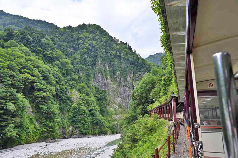 Gaung Kurobe, terletak di sepanjang bahagian tengah ke hulu Sungai Kurobe di timur wilayah Toyama, ialah gaung berbentuk V terdalam di Jepun. Keindahan pemandangannya hanya dapat disaksikan dengan menaiki troli kereta api.