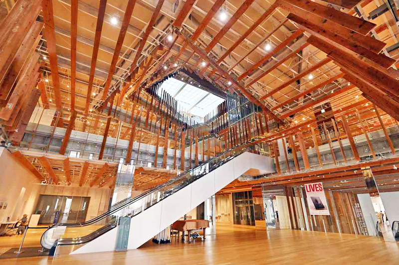 Satu lagi tumpuan ialah bangunan muzium itu sendiri, yang direka oleh arkitek terkenal dunia, Kengo Kuma. Bahagian luarnya, yang menggabungkan kaca, aluminium dan granit berkilauan di bawah sinar matahari. Di dalam, para pengunjung dialu-alukan oleh atrium enam tingkat yang luas dan bahagian dalam dipenuhi dengan kayu, yang memberikan suasana luas dan lapang.