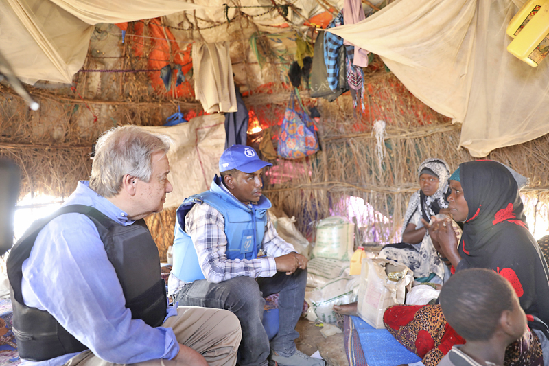 Guterres dalam taklimat akhbar bersama dengan Presiden Hassan Sheikh Mohamud memberitahu pemberita bahawa dia “datang untuk memperingatkan mengenai keperluan sokongan antarabangsa yang besar kerana kesukaran kemanusiaan yang dihadapi negara itu.”