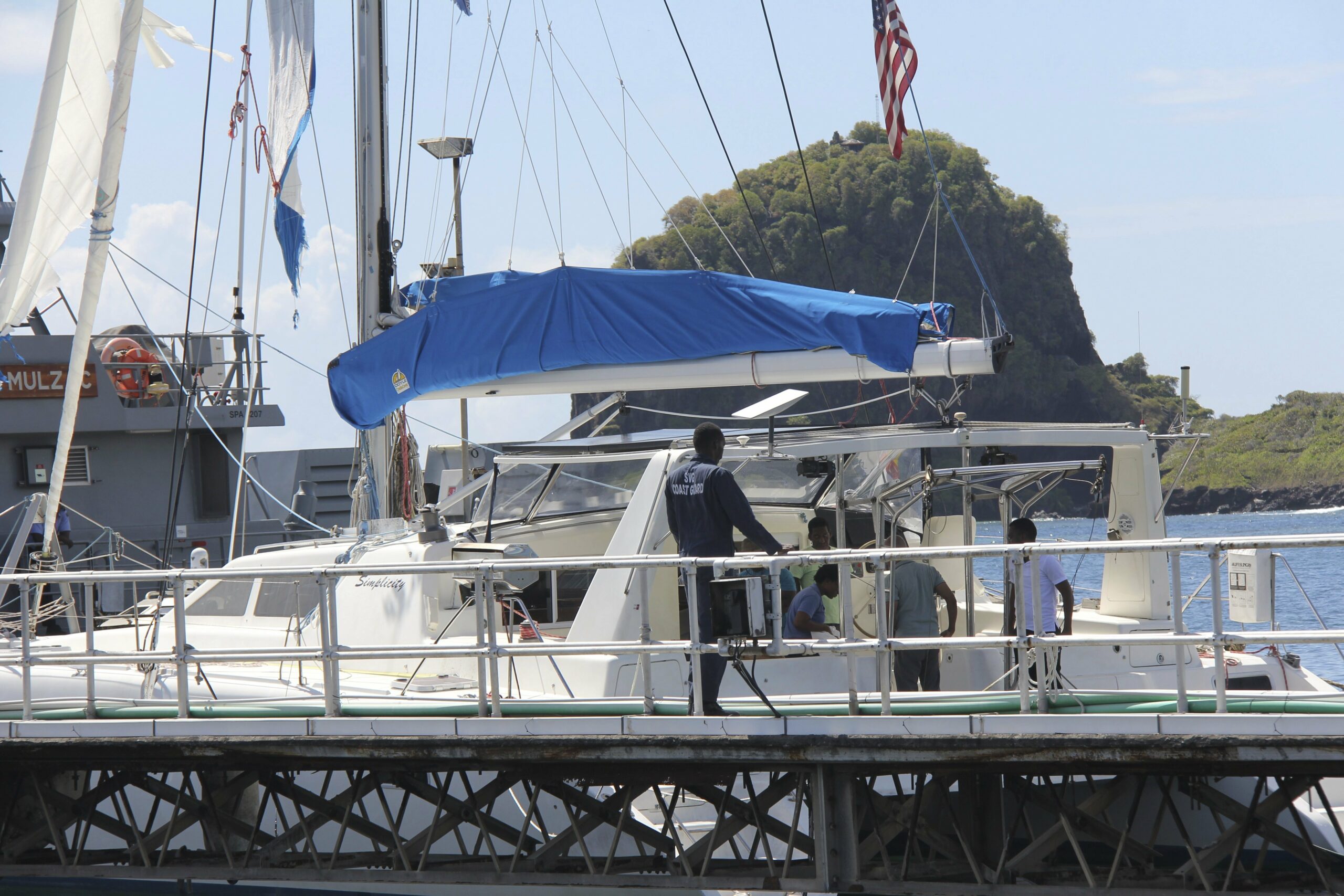 Ahli keluarga mereka yang hilang bertemu dengan pihak berkuasa di St. Vincent pada hari Sabtu, di mana mereka dilihat menaiki kapal layar yang dirampas. Ia dikawal oleh pegawai, salah seorang daripada mereka memakai sarung tangan lateks. – AP