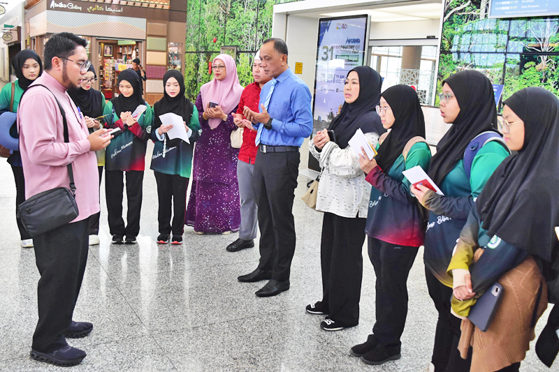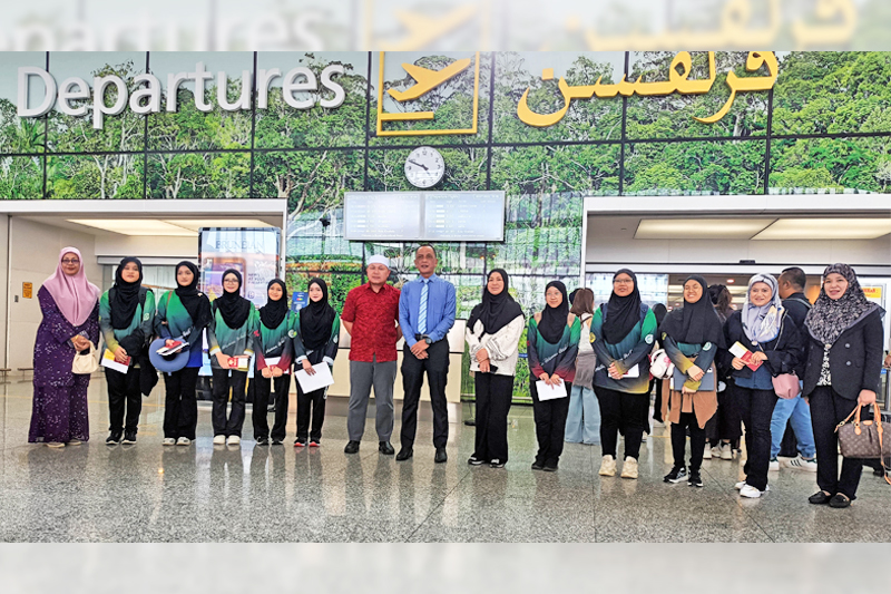 Hadir di Lapangan Terbang Antarabangsa Brunei (LTAB), hari ini, untuk mengucapkan selamat berlepas dan memberikan kata-kata nasihat kepada rombongan pelajar dan guru berkenaan ialah Pengarah Pendidikan Kokurikulum, Kementerian Pendidikan, Awang Julaihi bin Mohamad @ Mohamat.
