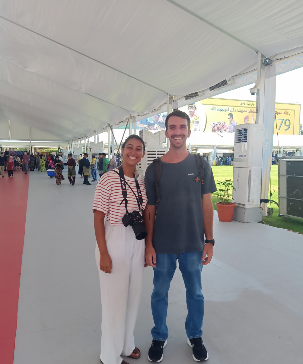 Sementara Pasangan pelancong dari Portugal, Diogo dan Barbara turut berkongsi perasaan teruja dan bertuah kerana berpeluang menyaksikan secara dekat majlis ramah mesra bersama rakyat dan penduduk Daerah Brunei dan Muara.