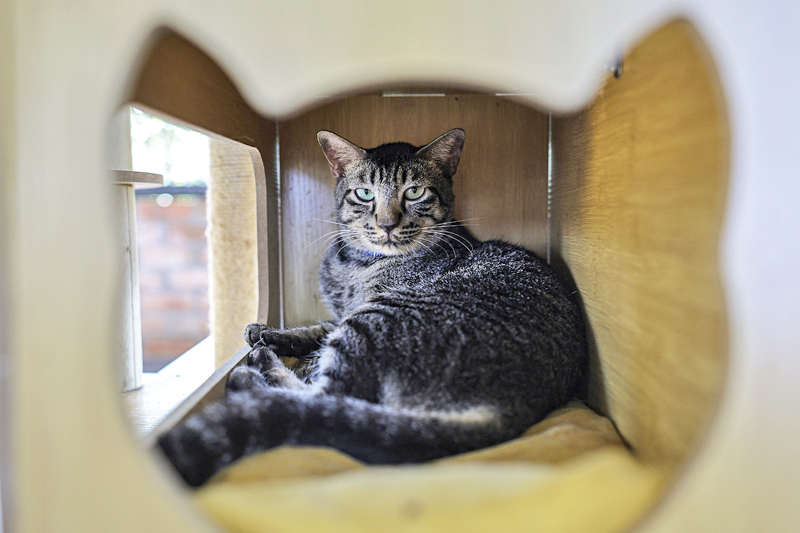 Mengintai di balik jaring bangunan berdinding separa bata merah yang menempatkan kucing-kucing, antaranya adalah si Oyen yang ‘terlebih’ mesra, kakaknya si Nur Ain yang suka menunjuk-nunjuk – akan berlari ala maraton di atas roda berpusing apabila ada pengunjung – atau Ais Krim yang gemar memanjat dan duduk di atas pokok hingga berjam-jam lamanya.