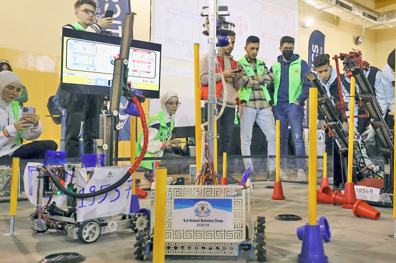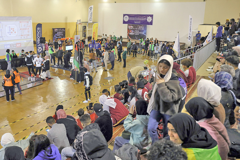 Acara itu dimeriahkan dengan pertandingan sukan peringkat sekolah menengah, dengan peminat bersorak untuk pasukan mereka yang sedang bertanding dalam petak di lantai gim, dengan latar belakang sepanduk yang mempromosikan ‘Lybotics dan First Tech Challenge’ semasa muzik pop Inggeris dimainkan.