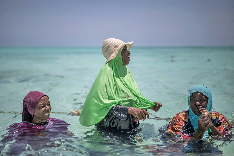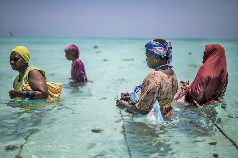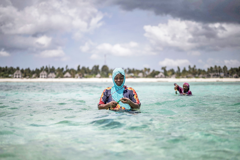 ZANZIBAR, TANZANIA – Kira-kira jam 10 setiap pagi, wanita berhijab dan berpakaian panjang longgar mengharungi air pasang cetek berwarna biru kehijauan di Zanzibar untuk menjaga ladang span mereka, satu talian hayat baharu selepas perubahan iklim mengubah pekerjaan mereka sebelum ini.