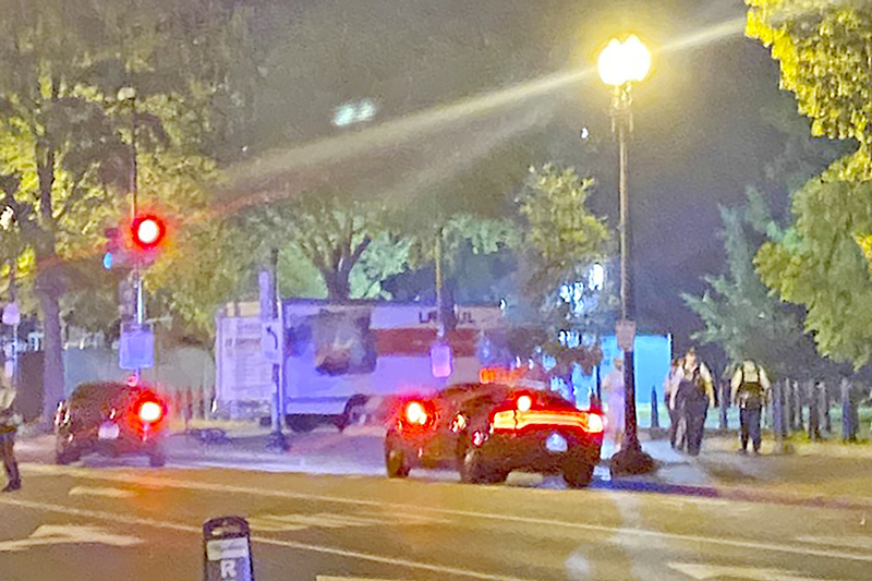 Pemandu itu nampaknya sengaja memandu memasuki tonggak jalan di luar Lafayette Park sejurus sebelum 10 malam pada Isnin, kata Polis Taman AS, sambil menambah bahawa tiada sesiapa yang cedera.