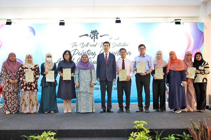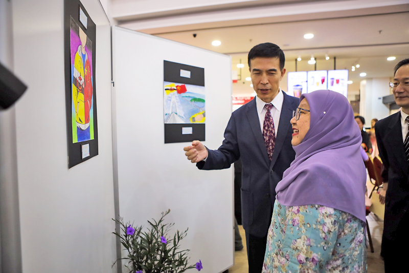 Kemudian, majlis diteruskan dengan perasmian pameran lukisan yang disempurnakan bersama oleh Dr Shamsiah Zuraini Kanchanawati dan TYT Xiao Jianguo serta diikuti dengan menyaksikan pameran hasil lukisan para peserta dalam pertandingan berkenaan.