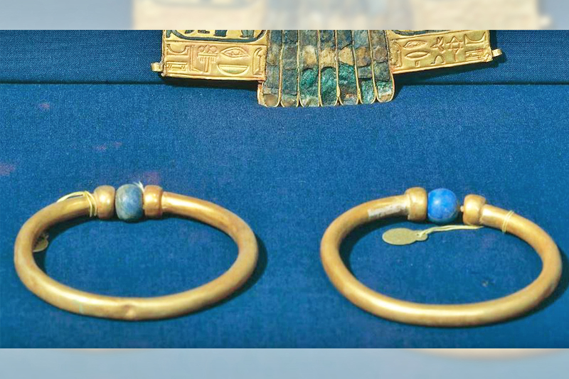 Gelang berusia 3,000 tahun itu, berupa jalur emas dihiasi manik batu lapis lazuli, berasal dari zaman pemerintahan Amenemope, firaun Dinasti ke-21 Mesir (1070–945 SM).