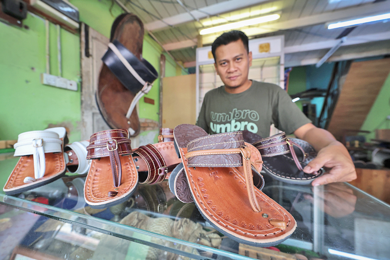 Menurut Badril Shahidan, capal yang dihasilkannya antaranya menggunakan kulit lembu, kambing dan kerbau yang dijual pada harga antara RM150 hingga RM480 sepasang. – Bernama