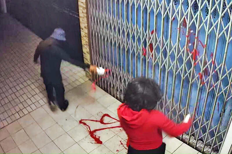 Beliau menceritakan bahawa dia menyedari kejadian itu melalui mesej yang dihantar kepadanya daripada rakan-rakannya mengenai cat merah yang disembur pada pagar hadapan kedai dan keretanya, kedua-dua perbuatan itu berjaya dirakam oleh CCTV.
