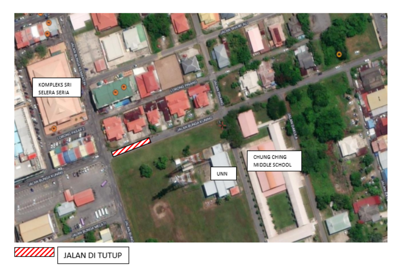 BANDAR SERI BEGAWAN, 8 OKT- Jabatan Kerja Raya (JKR), Kementerian Pembangunan memaklumkan kepada orang ramai terutamanya para pengguna jalan raya mengenai penutupan sementara sebahagian jalan di Jalan Bunga Kuning, Seria pada 10 Oktober bermula dari pukul 8.00 pagi sehingga kerja-kerja selesai, tertakluk kepada keadaan cuaca.